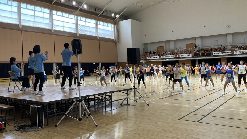 9月14日開催の東北フライトエアロビック選手権大会で選手の皆さん、観覧席の皆さんと一緒にスローエアロビックを楽しみました。
